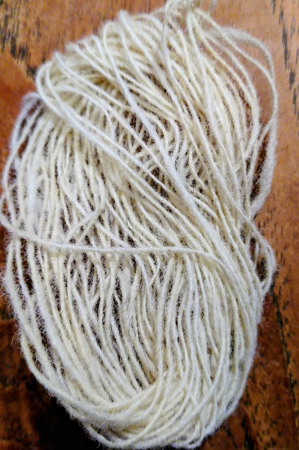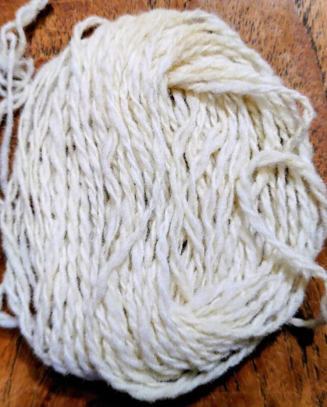 Le Roussin de La Hague est une laine tonique et solide. Elle est filée en un brin, pourtant fort solide, qui est tordu pour le tissage et pas retordu. Le fil mesure 670m aux 100gr.