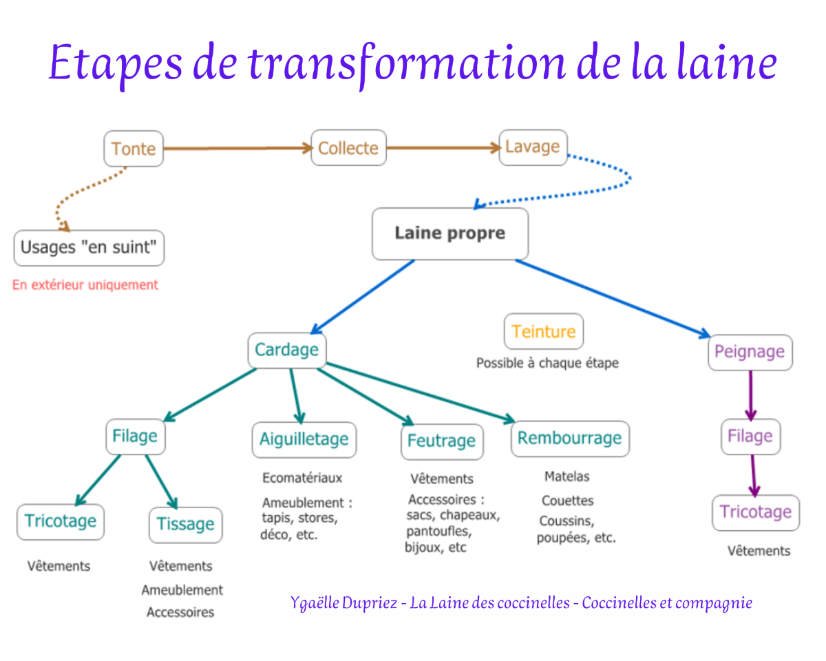 Schéma des étapes de transformation de la laine