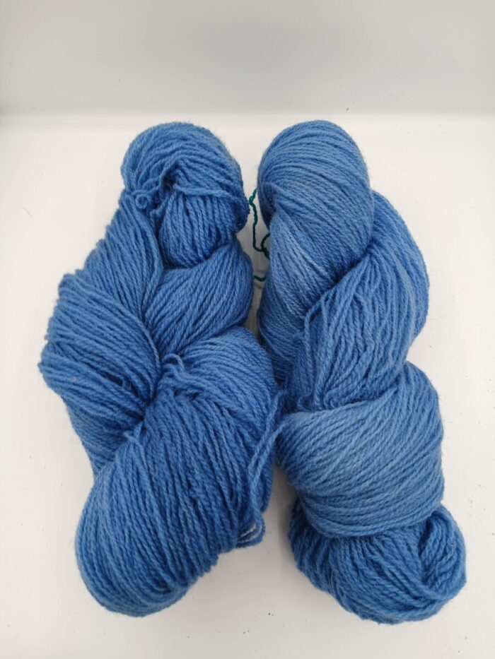 Écheveau 100% laine locale couleur ‘bleu roi clair’.