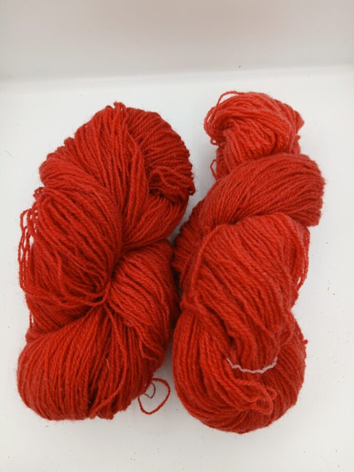Chaque écheveau fait : 2 brins – 400m – 100gr – Type fingering à tricoter avec des aiguilles 3-3,5. Convient pour des chaussettes pure laine et pour le tissage.