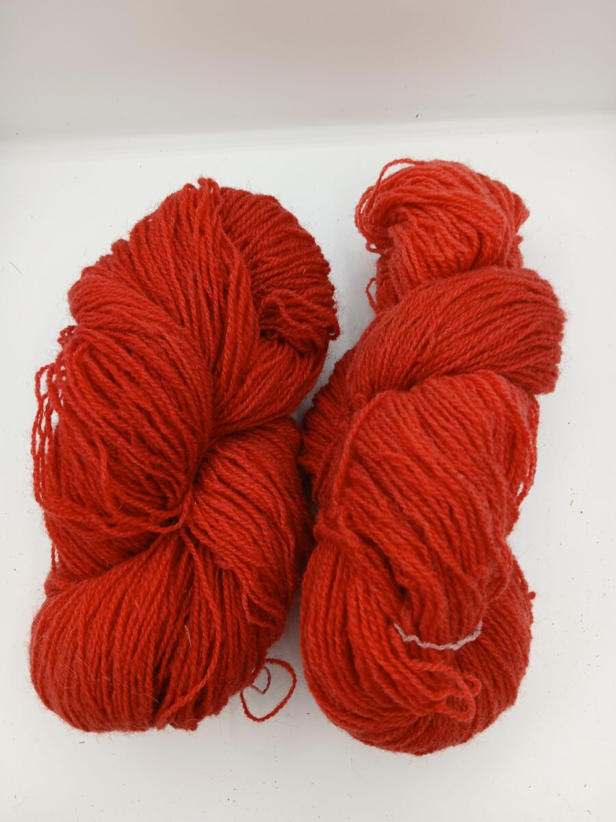 Écheveau 100% laine locale couleur ‘framboise’.