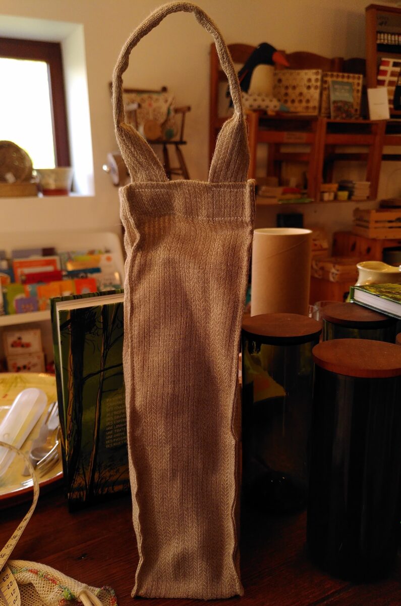 Étiquettes : bouteille, cadeau, fabrication française, lin, lin français, naturelle, porte-bouteille, réutilisable, transport de bouteille, vin