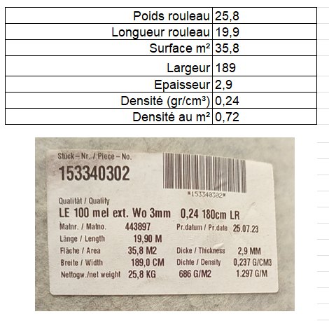 Le feutre fait 3mm d’épaisseur, il est gris clair, se découpe aux ciseaux et se coud à la machine à coudre.