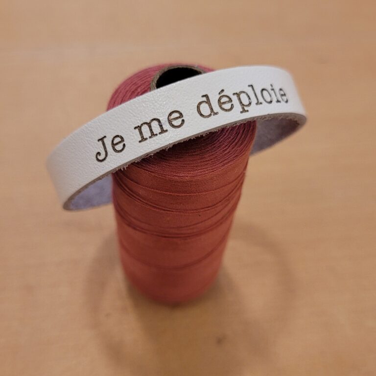Bracelet en cuir belge gravé par Agnes Marlier avec des phrases poétiques